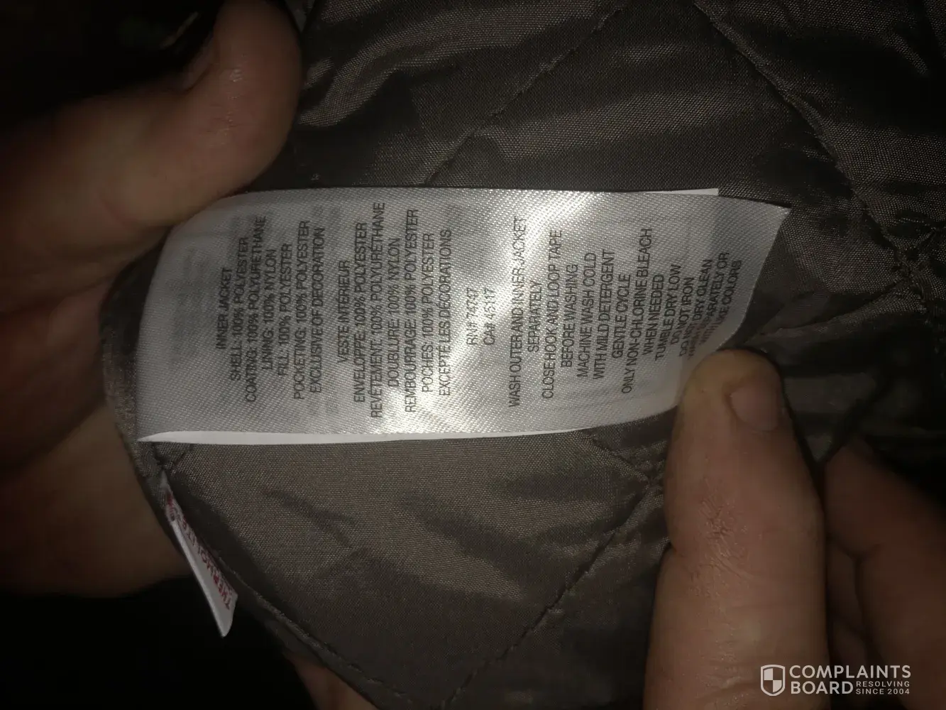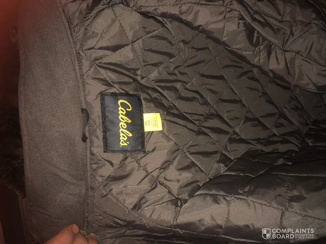 I bought a $250 Cabela's jacket and was disappointed in the name Cabela name brand tag being added on upside town.