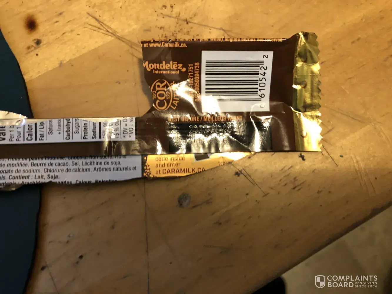 I bought 2 caramilk bars and both, i fought to get into, then to find glue all over it. I end up throughing them out but kept the wrappers.