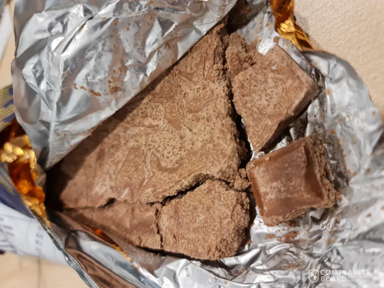 The choclate was pkd on 14/02/2021. The choclate was looking creepy. It says rich classic choclate -why? how? can choclate this bad be rich and classy.