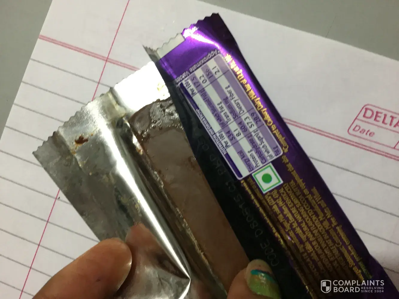 I am complaining about the dairy milk chocolate of rs. 40