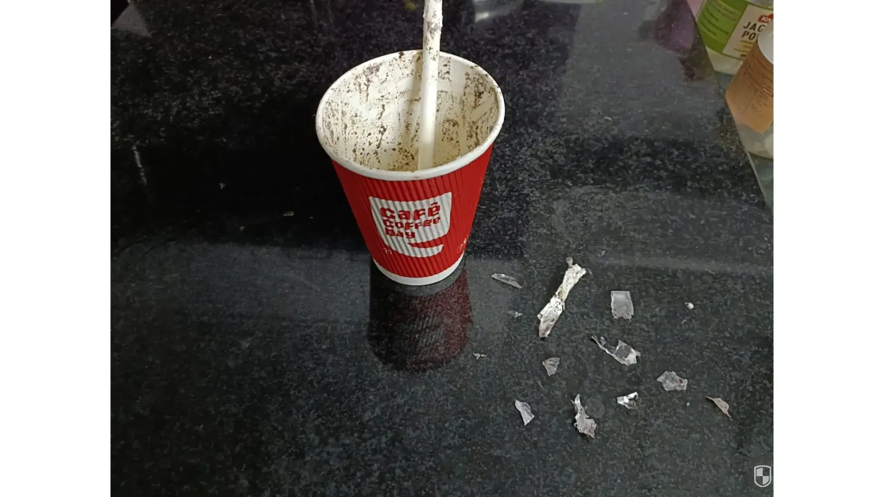 Cold coffee is served without straw and expresso is served in a paper disposable cup while other customers are served with normal proper small single and double shot cup.