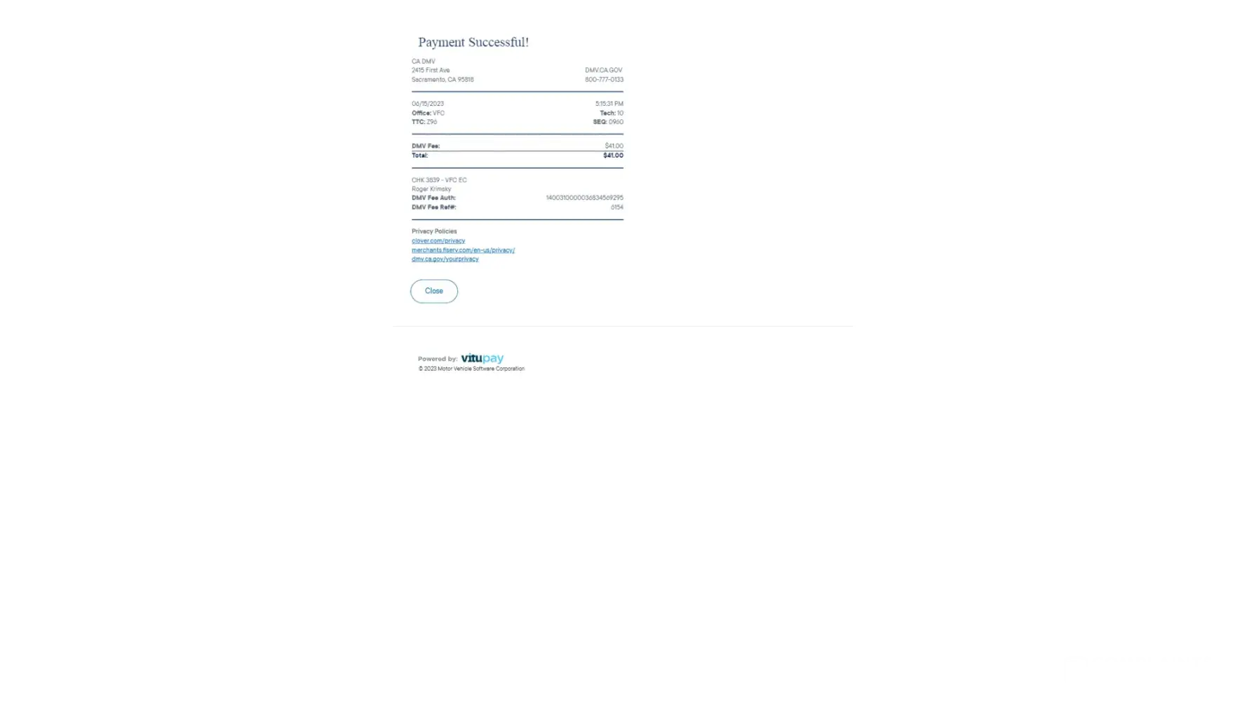 Febuary 2, 2023 I went to the dmv to pay my tags so I went to the kiosk machine I did a transaction took my money and never gave me my tags so I ask the person at dmv they said the machine don’t work and to call the number that is on there but I did not leave without paying my tags so I wouldNT GET interest fees charge. SO I STAND IN LINE AND PAYED MY RENew REGISTRATION FEES AND WAS HANDED MY NEW TAGS AND RECEIPT THAT I PAYED MY VEHICLE REGISTRATION. So now I get a letter from dmv DEMAND FOR PAYMENT FOR VEHICLE REGISTRATION?