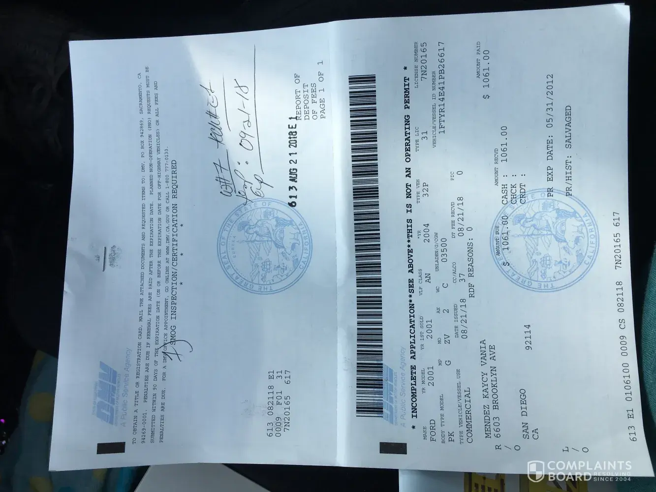 On 07/10/2018 I had went to the Ca. DMV in San Diego on Normal Street to register a truck my dad had bought for me in Tijuana. It turns out the truck hasn't been registered in years and the lady helping my submit my paperwork/forms had sprung a fee of $841.00 rather than the $250 fee I thought I would be paying to register a car. I told the lady on Normal street I didn't have the $841 in my account as of the moment and she told me I could come back and pay it later. As soon as I had saved up enough money about almost 2 months later to pay the $841 fee I went to the Chula Vista DMV today on 08/21/2018 and the lady who served me told me whoever submitted the papers on Normal street had done the paperwork wrong and I have to pay $200 more for the taxes on the truck she claims whoever bought he truck didn't pay "taxes" so it's $1061 for the fee rather than the $841 I was originally charged. I was very distraught because I had worked hard and saved all I could to be charged $1061. And then I have to pay ANOTHER $200 that she had left pending because I could only pay so much. I don't understand why I have another $200pending charge when I payed the $200 more with the $841 which made the $1061. Its not my fault I was told to pay only $841 when I trusted the DMV workers to do their job right, and then get ADDITIONAL fees last minute. I had to beg my mom to borrow the $200 so I can get the slip to get the smog but I don't know how I will pay the additional $200 more she left pending on my charge. I'm disappointed I the customer service as I did trust the first time I was told I would only pay the $841 and then be told the second time I have to pay more so now I'm off on all my bills. The lady who told me it's not her fault I was charged wrong was rude about it, like I said it was not my fault THEY were wrong in the paperwork. I did my part of going the first time to get the paperwork forms and save up as much as I could to pay the original amount I was told to pay and get charged basically $400 more because I paid the $200 + 841 making it $1061 and still left a pending charge of $200 when I though I paid it with the $1061 I was charged. I ask that you take away the pending charge because I did pay the additional $200 and I don't understand why I'm still being charged when it was THEIR MISTAKE and not mine.