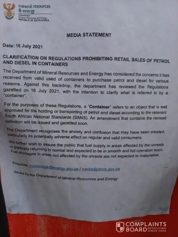 The Forecourt Manager (Sine) is rude and does not know legislation regarding fuel and containers. He is rude and interrupts while I tried to explain the legislation to him. His staff is not informed as he is not himself understanding the legislation. It is shocking that someone in charge of a fuel station does not himself understand the legislation that governs fuel and it actually borders ignorance. I will not be buying anything from Caltext Alto Towers. Unbelievable that a bi garage like that is so out of touch with legislation and a Caltex down the road, has acutally goen through the effort to put the legislation on their pumps and their staff trained to explain it to customers. Well done to Caltex Steelnbosch Arterial. Etlo Towers should get rid of Sine, not cusotmer focussed and WAY TOO defensive instead of listenign to customers.
