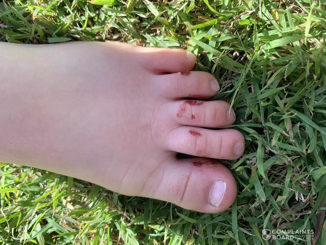 I didn't see the incident my daughter came running to me with blood coming out of her foot.
