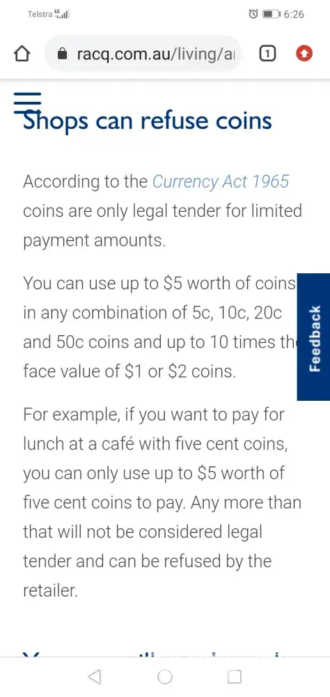 I would like to know if this is true as I have never had a problem with paying with coins and not that I do all the time.