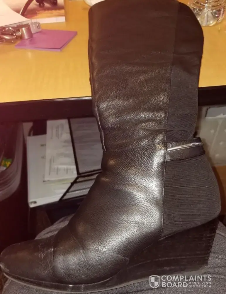 I bought a pair of leather boots last year through Zappos that I don't wear often. I live in CA. I paid over $125 on sale. Last week the sole of the right boot broke in half. I've never had this happen to a pair of shoes and I frequently buy Calvin Klein or Kenneth Cole shoes. They both are my favorite shoe makers and fit my feet well. I really love these boots and when I wear them, I get a ton of compliments but I can't afford to buy another pair and I don't want to pay for the repair. That would make the boot cost more than what I spent. I work in a professional atmosphere and fashion is my passion. I would like credit to buy another pair or a new pair of the same boot. I wear a size 9 and prefer leather because they last longer. My shoe guy says it will cost a lot to repair. My number is [protected]. My address is 1146 W 127th st, LA, CA 90044. the tips of the boots just started unraveling also on the day of the last rain in CA about two weeks ago. Today is Feb 1st. I can search for the receipt in my home email but I'm at work right now. Claudette.l.[protected]@kp.org