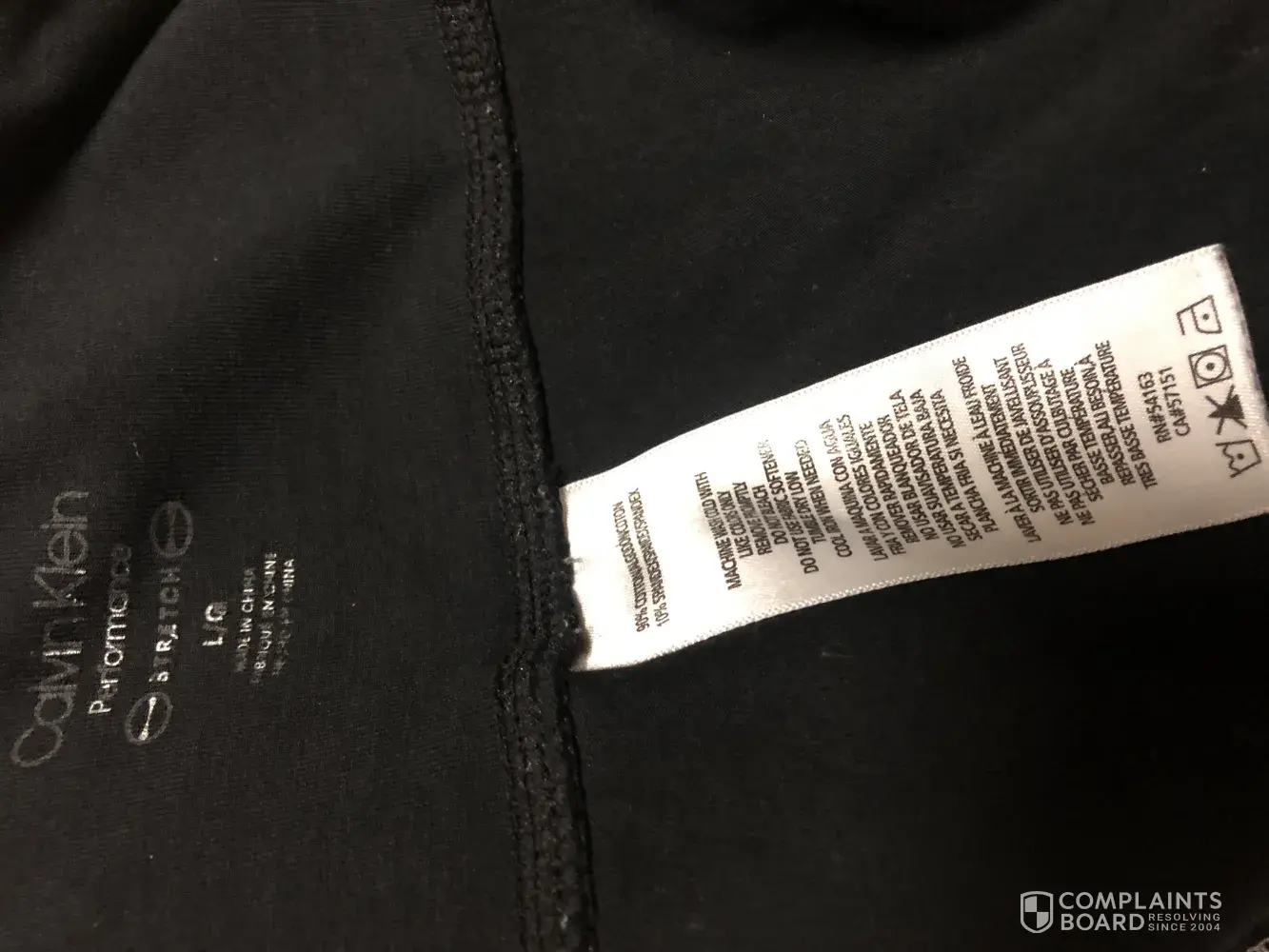 I purchased a black pair of stretch gym pants for my daughter about two months ago. The pants have been worn a few times but not after only two months. Cheap stretch pants don't wear till about six months or so. The pants are full of little pin holes which I was trying to see but realized they are all over the pants. I expected far more from your product. We are big Calvin Klein fans in my home and never have had any complaints of any other clothing or accessories . . Just very disappointed in the quality of this item. Thank you. Sabrina Forrest
