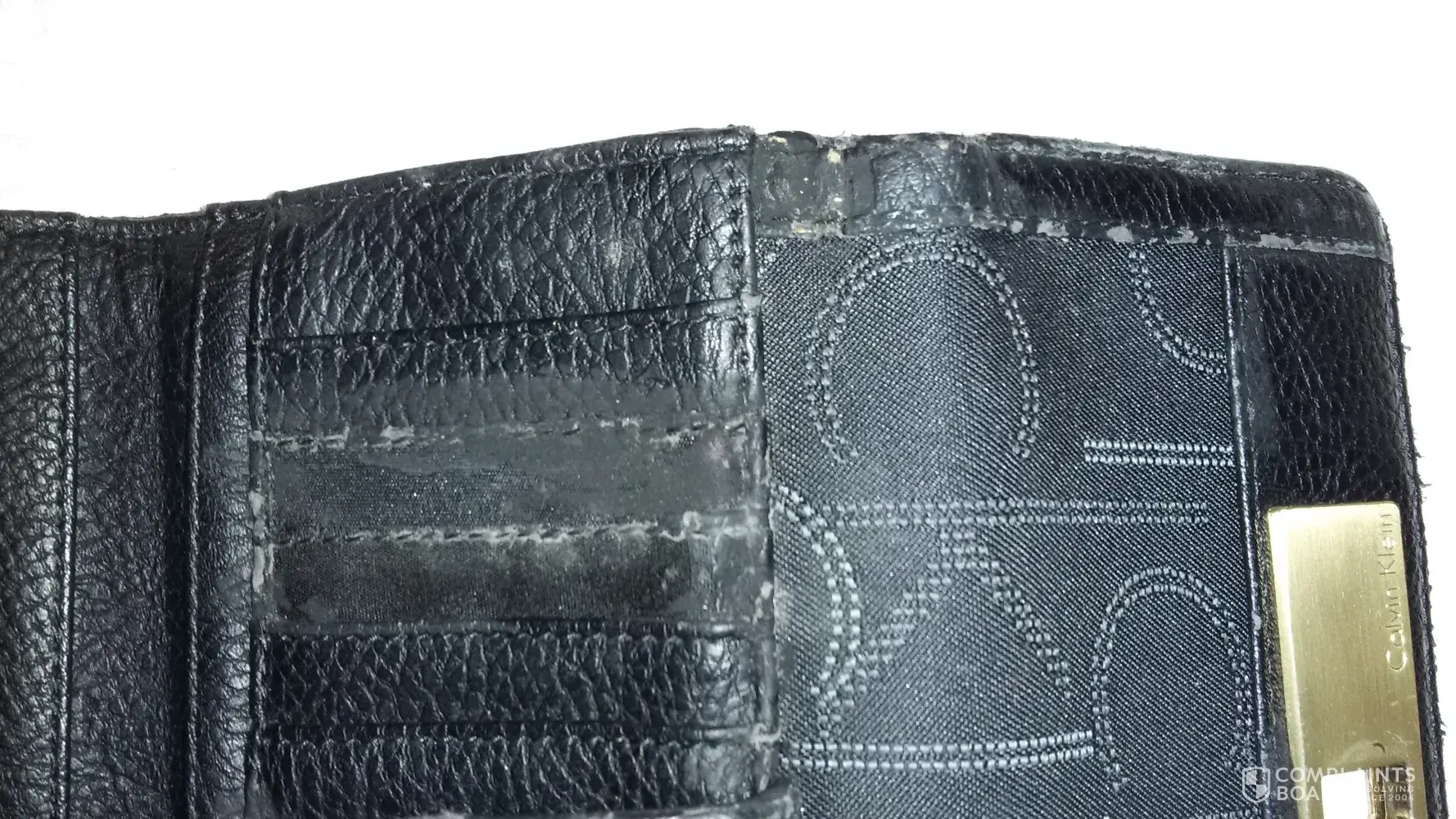 Less than 6 months ago I bought a wallet and purse from Calvin klein and both products had the same problem. The material that covers the products is coming out. When I bought it I was informed that it was leather now I'm sure I was deceived.