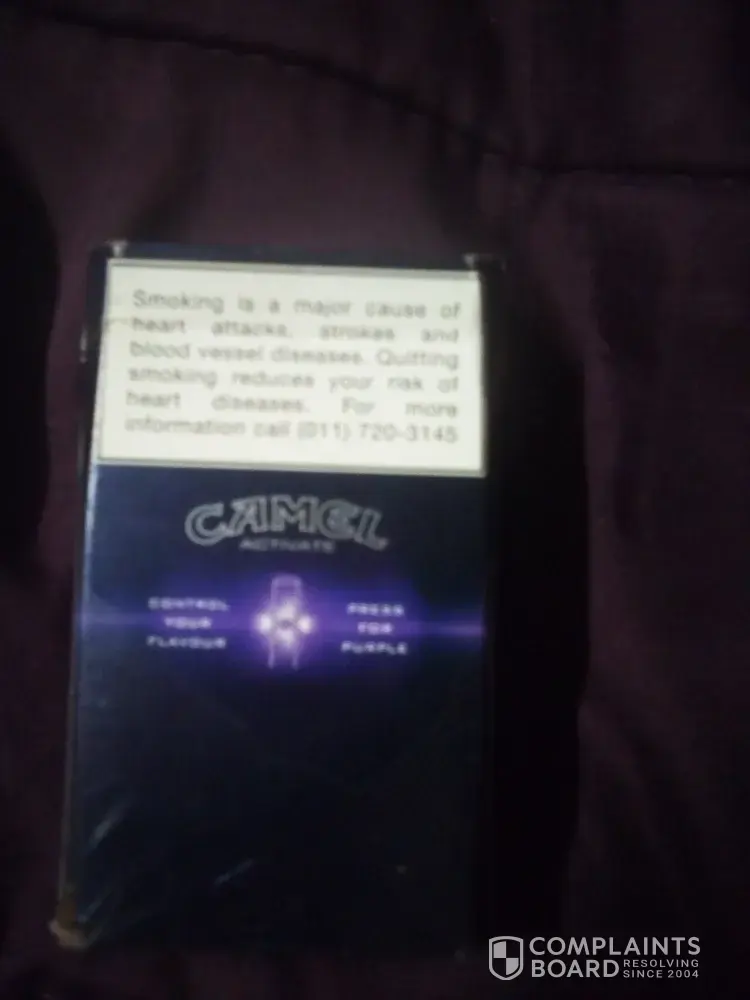 I bought a 20 at pick n pay I bought the purple box but all the cigarettes are mint this is unacceptable I want my money back😡if I wanted the mint flavor I would have bought this is really taking advantage I suggest something is done about it because it is not pick n pays fault because they do not manufacture it camel that doe come back to me with a solution fast