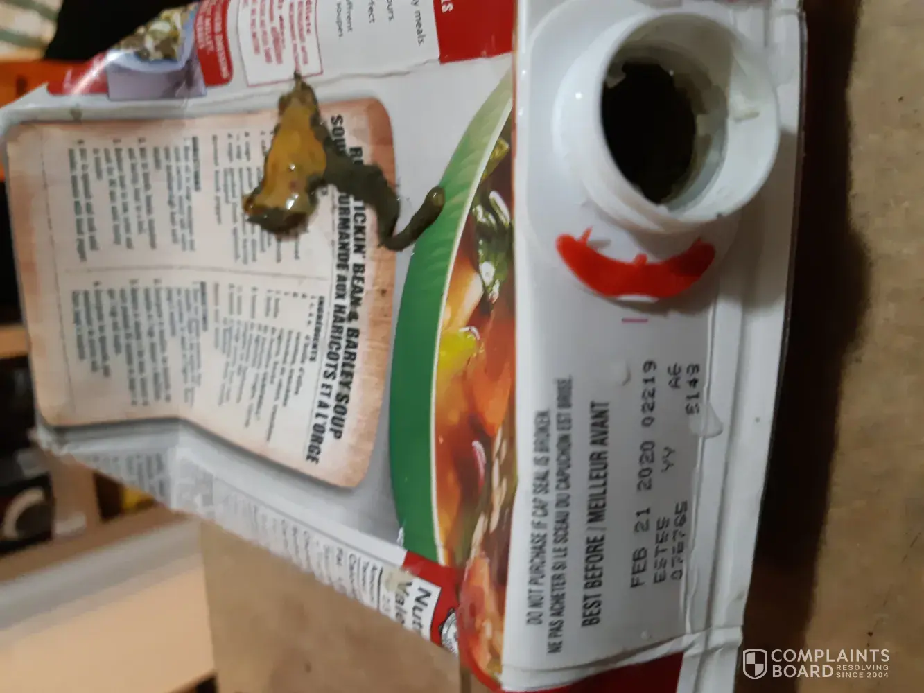 Campbells soup expiry Feb 2020. That green orange mung came out of container when I was rincing it for recycling made a huge pot of veggie soup ate 2 bowls...