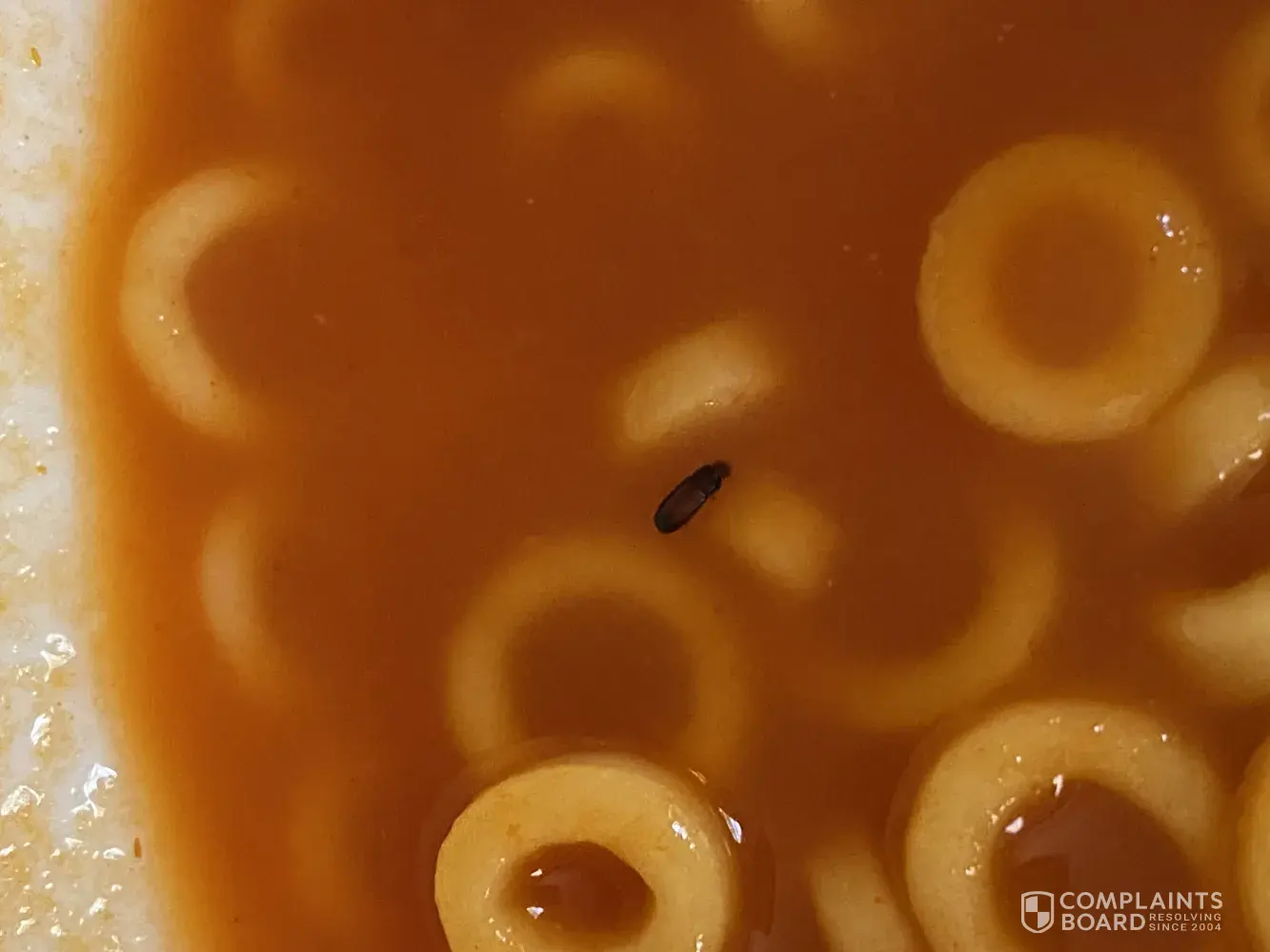 Found a bug in my spaghettio's and Frank's! Took pictures. Absolutely disgusting. This is one of my favorite things to eat and I'll never buy them again. Campbell's is starting to really turn into a disgusting, disappointing business! PAY ATTENTION. I almost puked! And it's absolutely stupid that you need to make this 350 letters. Figure your [censored] out.
