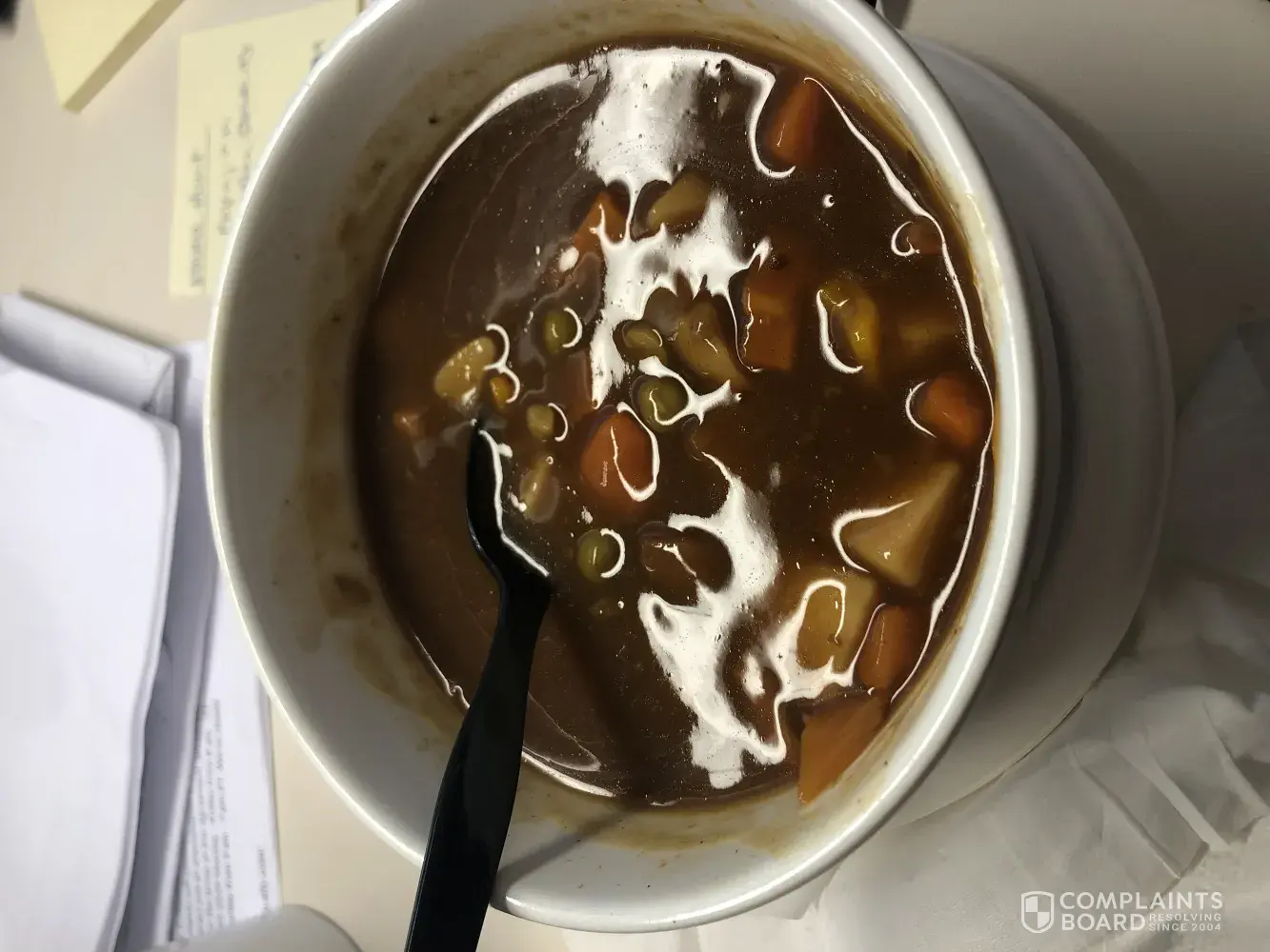 I bit into a hard black item. Nothing like anything that is included in the soup. I had taken a few bites and threw it away after I found that. It’s disgusting.