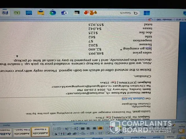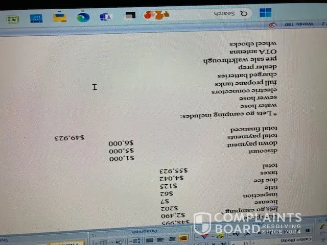 I purchased a travel trailer on 2/29 for $50,000. I was promised a weight distribution hitch and the installation of an electronic brake module as part of “Let’s Go camping” package that I paid $2500. I Did not receive hitch nor the brake module. I Did not get walkthrough. The GM at the Mesquite Texas location, gave me a folder of papers at the time of sale, but failed to give me copies of the signed sales documents. After I realized the bill of sale was not in the packet, I called and asked him to email them to me. He said he would but did not. I emailed and called him several times asked him to send them to me but he refused.