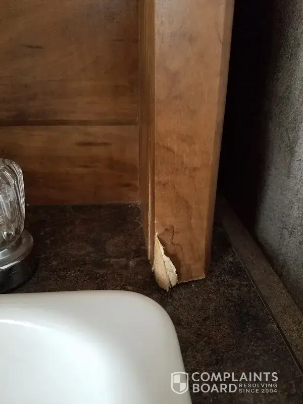 5. Right side of sink on outdoor kitchen water damaged – due to the fact the outdoor kitchen door was warped for so long (picture numbered “New_5â€)