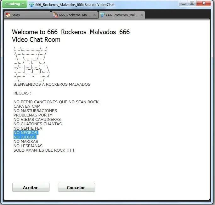 We camfrog video chat users in the area of Latin America, we are outraged by what we do is protest against abuse of authority or power that this person may have and also ask the RESIGNATION total charges this person may have in the Camfrog video chat program.