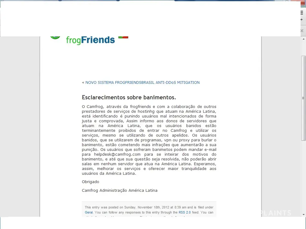 Users with servers and rented rooms to other users, also feel threatened because of this person, rules to put this person and appears on the blog ( http://www.frogfriendsbrasil.com/blog/?p=619 )