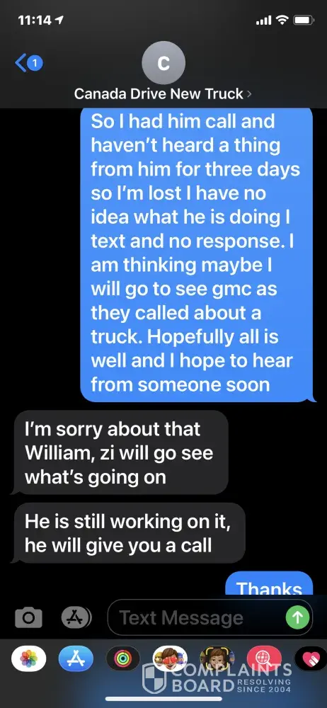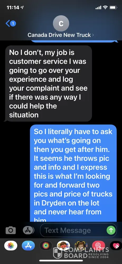 Go through all the credit checks and approved for vehicle and then get two vehicles sent to me that I do not like. Spoke with sales guy and informed of what i want and sent pics and price even from vehicle window of trucks I want. No call back or message. Talk to Canada Drives Lady Danielle Betterridge and sent her info as well and spoke with her. She seemed like she may be somewhat concerned but was like in a daze. I haven't heard a word since from either of them two weeks and counting. They run credit and it brings credit down and then don't want to listen to what YOU want as buyer. Literally just run credit and never call or listen. It's pathetic. Winnipeg Canada Drives gets a 0 out of 10 and same with the entire buying experience. It's awful.