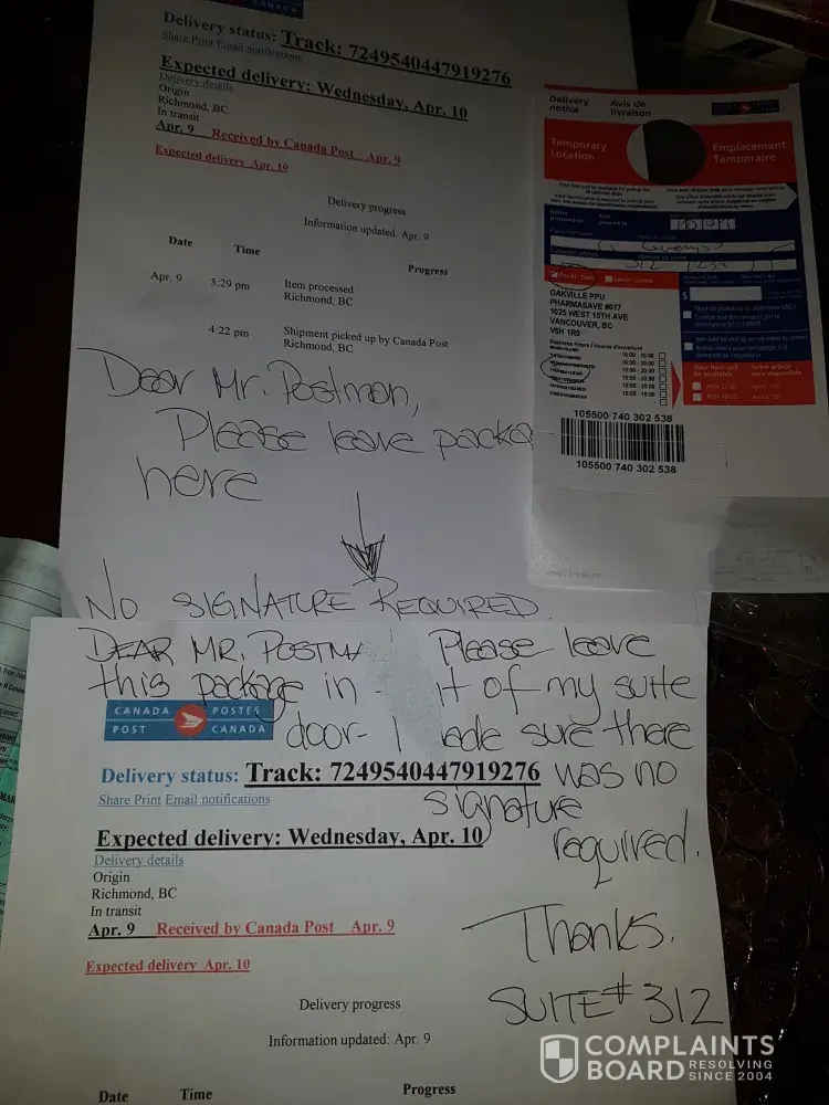 Canada Post delivery not made