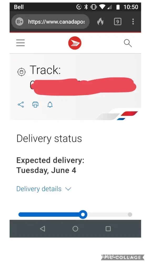 Canada Post parcel delivery notification