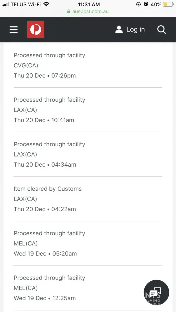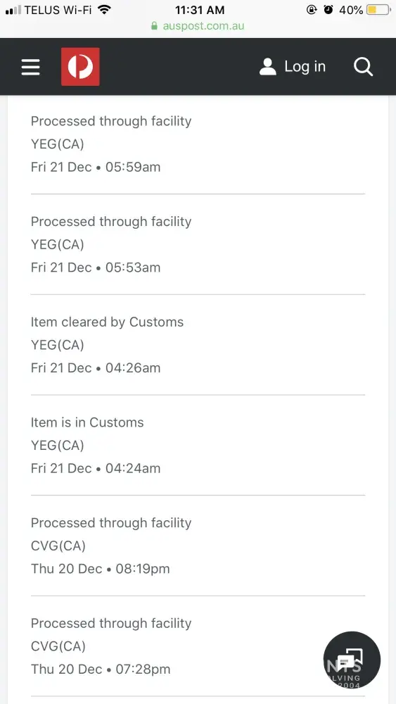I have contacted Canada Post and tried to open up a service ticket. They closed my ticket without contacting me and when i called them to inquire I was told it "was closed because there is no record of it in Canada Post's computers". I talked to a supervisor, eho looked on Australia Post's website, confirmed that it said that Canada Post had it and told me that I couldn't be helped and needed to contact Australia Post.