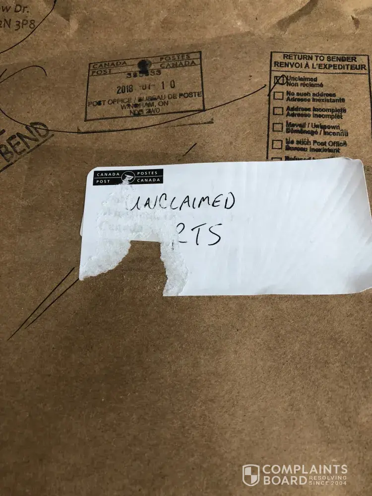 I reported this to Canada Post and they stated they would look into it. I have called 3 times since and they stated that the package was delivered, and if I want to initiate a complaint I need to have the originating company file the complaint.