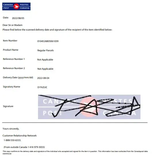 Desired outcome: I would like my family member to be refunded the cost of shipment and the cost covered to use a different carrier of choice as Canada Post cannot be trusted to deliver the mail.