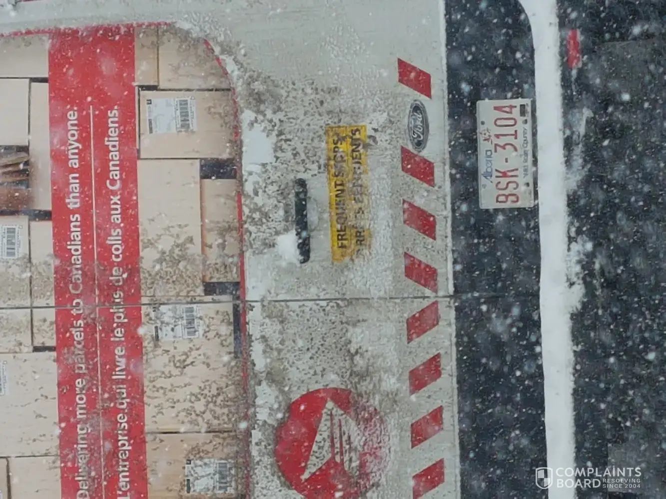 Today in Calgary it's snowing pretty heavy and the roads to say the least are horrible and slippy. I was driving home and one of your postal vans was driving too fast, nearly took out my vehicle and a couple others because he was driving too fast. Licence plate #BSK-3104 @ 1:15pm March 16th. Please address this issue. Really not impressed.