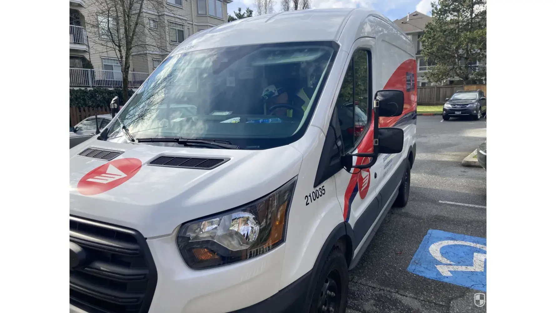 This Canada Post driver blocked access to a handicap parking spot. WhenI asked him to move his vehicle he replied with f%%k off and mind your own f%%king business. When I took these pictures he went POSTAL and tried to assault me.