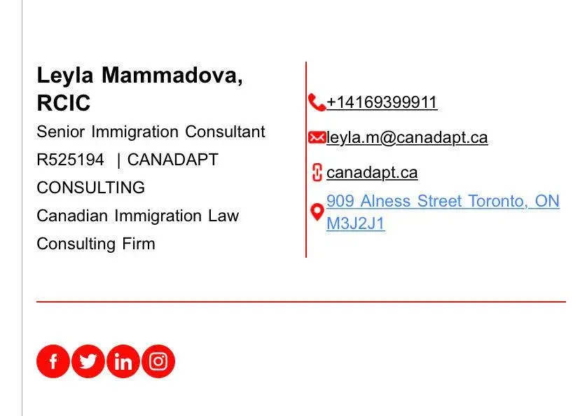 Leyla Mammadova the immigration consultant's license is currently suspended by CICC. (Refer to their website as the information is public.)