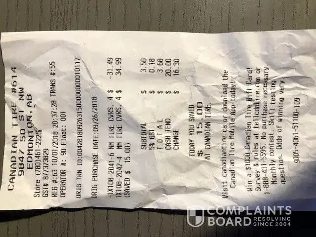 Name of Canadian Tire employee: Liza (Automotive Dept.)
