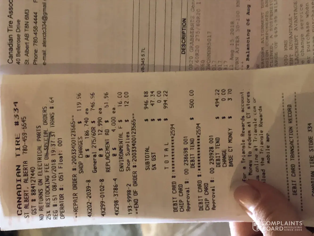 I do have 2 more complaint about the Automotive Service Department the #200-388 Country Hills Blvd N.E Calgary, AB.