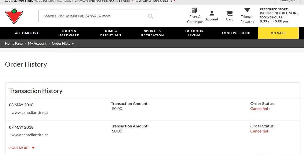 I continued to check the status of my online order, which, up until 2:45pm, continued to say in progress. I finished work at 4:30pm and decided to check again before I left, and upon my surprise, the order now said cancelled! What!?! No email or call or anything, just cancelled! I then did a product search online for the golf shoes, and sure enough, they came up as available in the same size I needed, and the stock information said "updated at 3:01pm". I didn't understand. So I placed a second order for the shoes [protected]) and figured I'd wait until the next day to see what was going on. For the entire next day, my order again stayed in the "in process" status, without changing. At this point, I figured that the original person probably went to pick my order, couldn't find the shoes, so just cancelled my order (without making the necessary stock adjustment on their system, which is why they showed available when I placed the second order). That being said, you'd think a phonecall or follow up email would have been made to advise the items were unavailable and/or that my order had to be cancelled. I guess my buisness isn't appreciated. (This also coming from an ex-Canadian Tire employee)