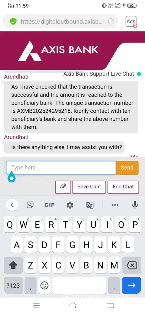 I have transferred the amount from my axis bank account to Canara Bank account on 8th SEP 2020. The amount is deducted from my axis account and they have provided transaction number to contact Canara Bank. I'm waiting from 10 days please you either credit the amount to my Canara Bank account or send back to axis bank.
