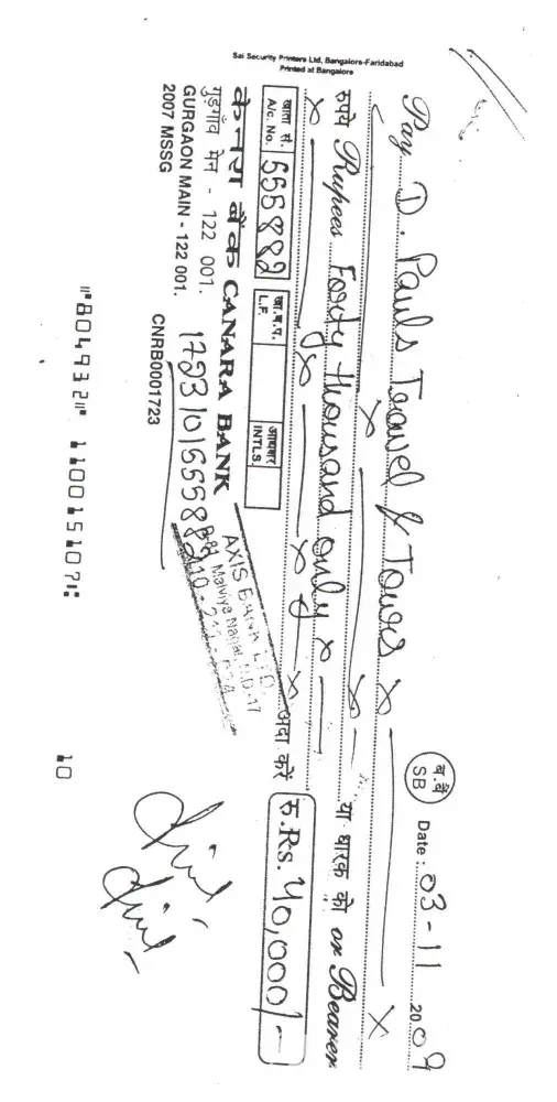 Canara Bank Not received payment against submitted cheque in may 2009