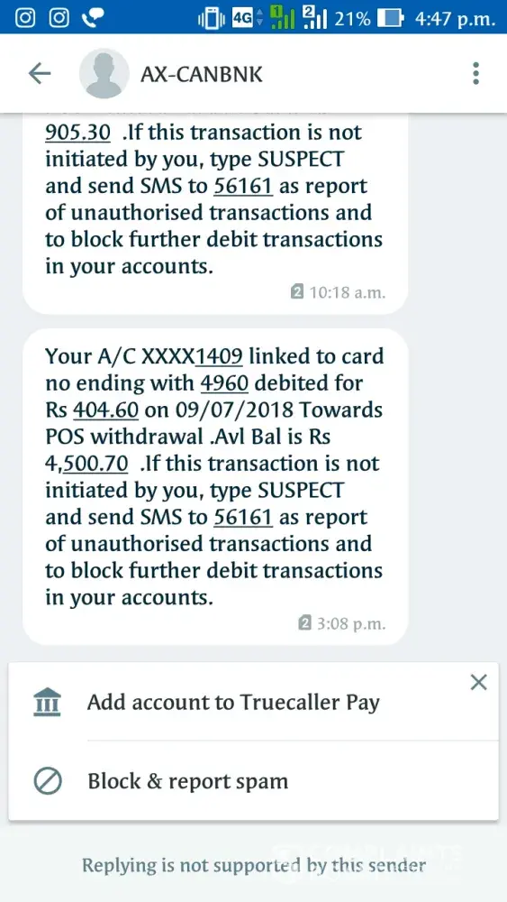 Canara Bank Wrongly debitted amount from declined transaction in icici swipe machine at vasanth & co, adyar branch, chennai