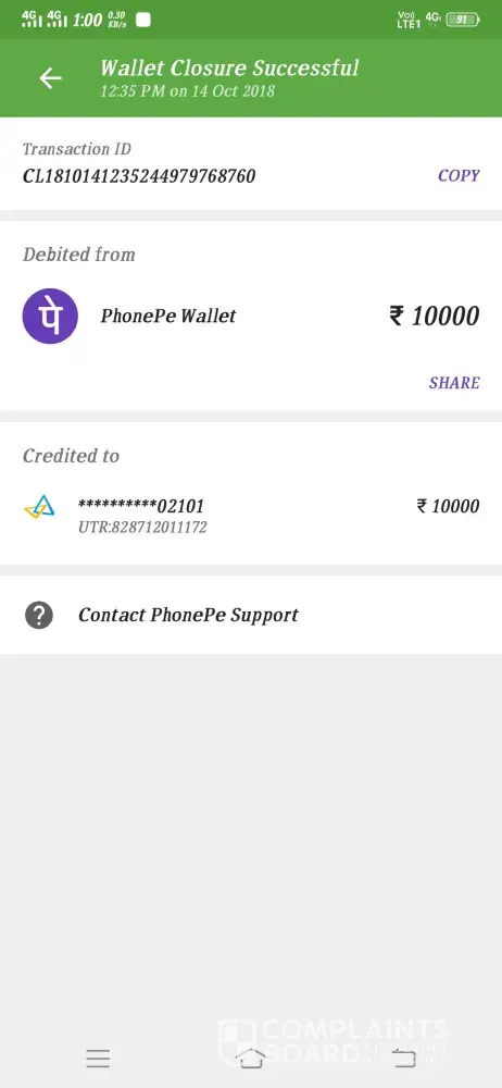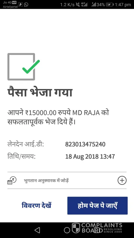 Sir mera 10000 rupees show nhi hua 14/10/2018 ko phone pay se rupees transfer kiya tha laki wo account ma nhi show hua