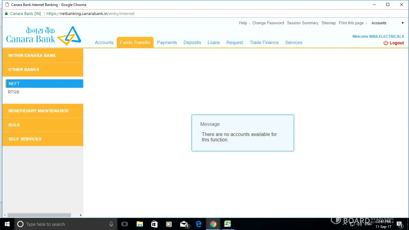 i am internet banking user. now my internet bank account not working properly. only (there are no account available for this function) message coming my account display. many time i told karuvi canara bank manager nagapattinam district, and your customer care help desk everybody not solved my problem. please help me save my business.