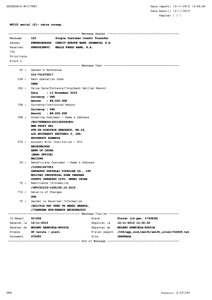 Because the work in Romania had to start very quickly I dropped fasteners and gasketsfor flanges because I was forced to buy from Romania due to delivery time. On 12November I paid advance of 20% of the tubes are seamless, and the remaining amount in the CIF Constanta port in accordance with contract. Seamless pipe under contract had to be loaded on the boat in 15 days in advance.
