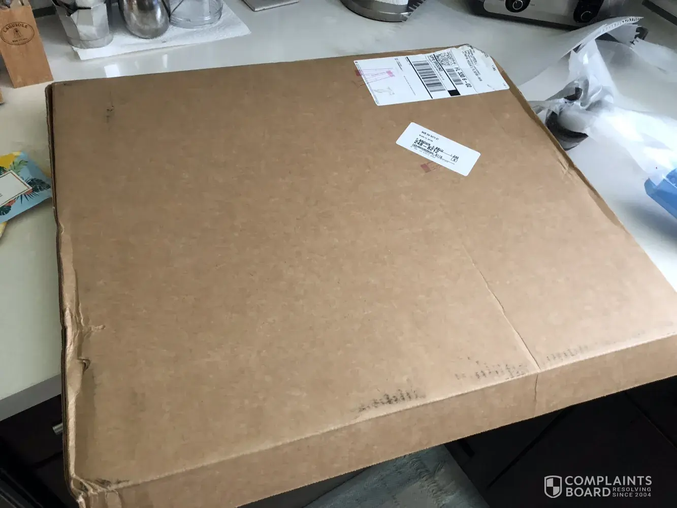 Just received my order today via UPS, the driver knocked at my door and left it there. I got it as he was driving away and noticed immediately that the box had two dents on it, I opened it immediately and found that the frame was damaged in two parts. Pictures submitted.