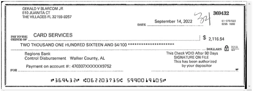 Desired outcome: Return of $2116.54 to:Gerald Van Blarcom610 Juanita Ct.The Villages FL 32159
