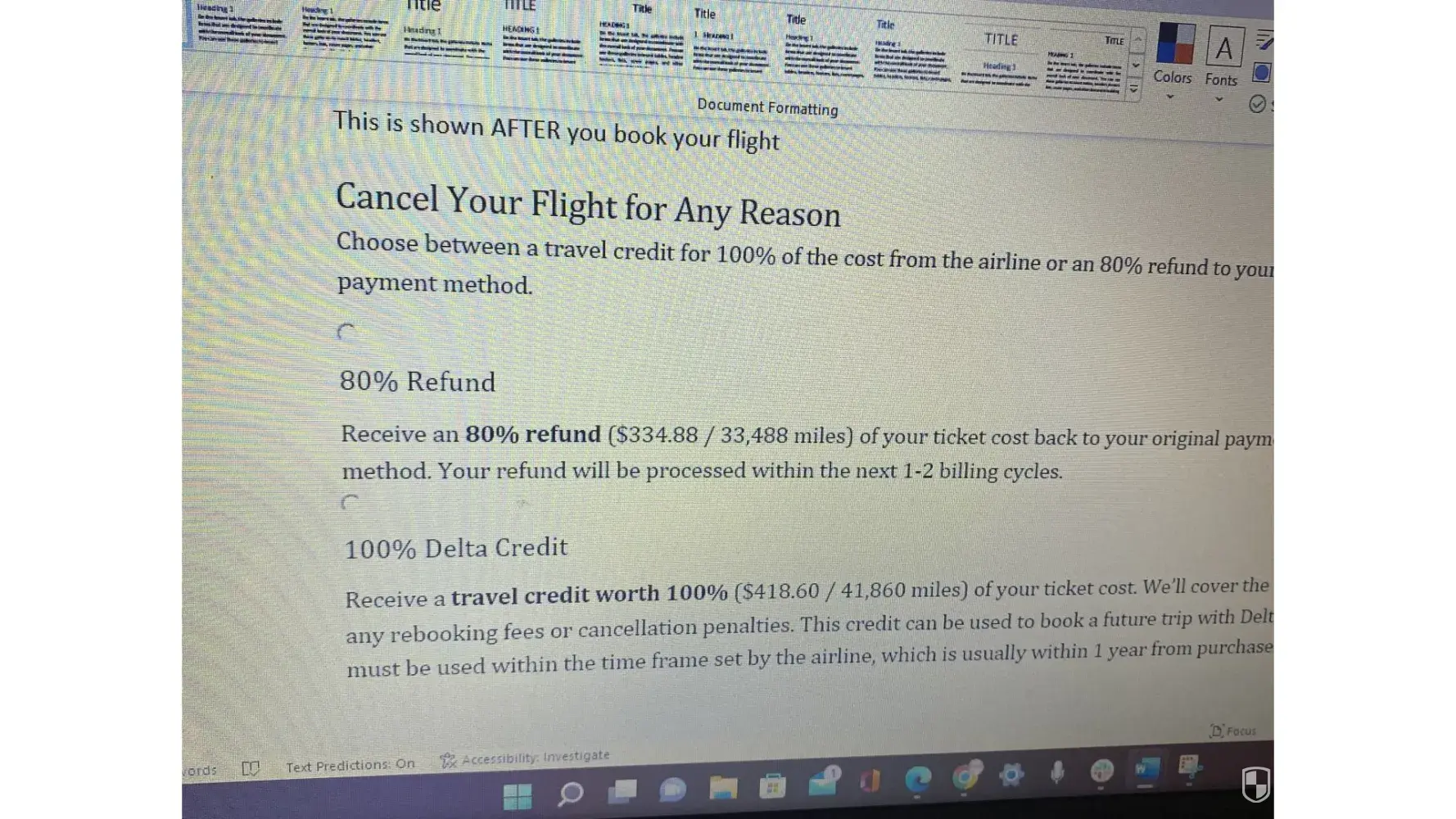 Travel Credit. When elected, you will be provided a travel credit subject to the terms and conditions of the respective airline carrier. Travel credit restrictions can include limitations to availability, flight routes, and passengers. A full description of terms and conditions can be found on the respective airline carrier’s website.