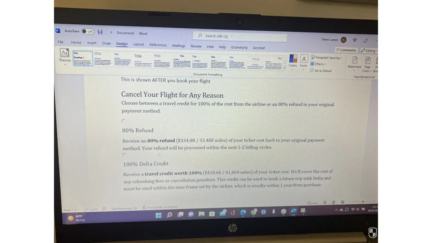- Logged on to make a change to the flight due to it now showing a layover. It was originally a direct flight from PDX to PHL on Delta and I HAVE PROOF!