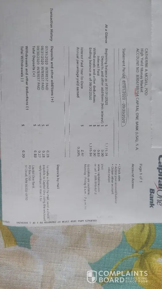 I, Catherine A McGill, closed two savings accounts in Feb 2023. After waiting two weeks and not having received any money, I attempted a call.