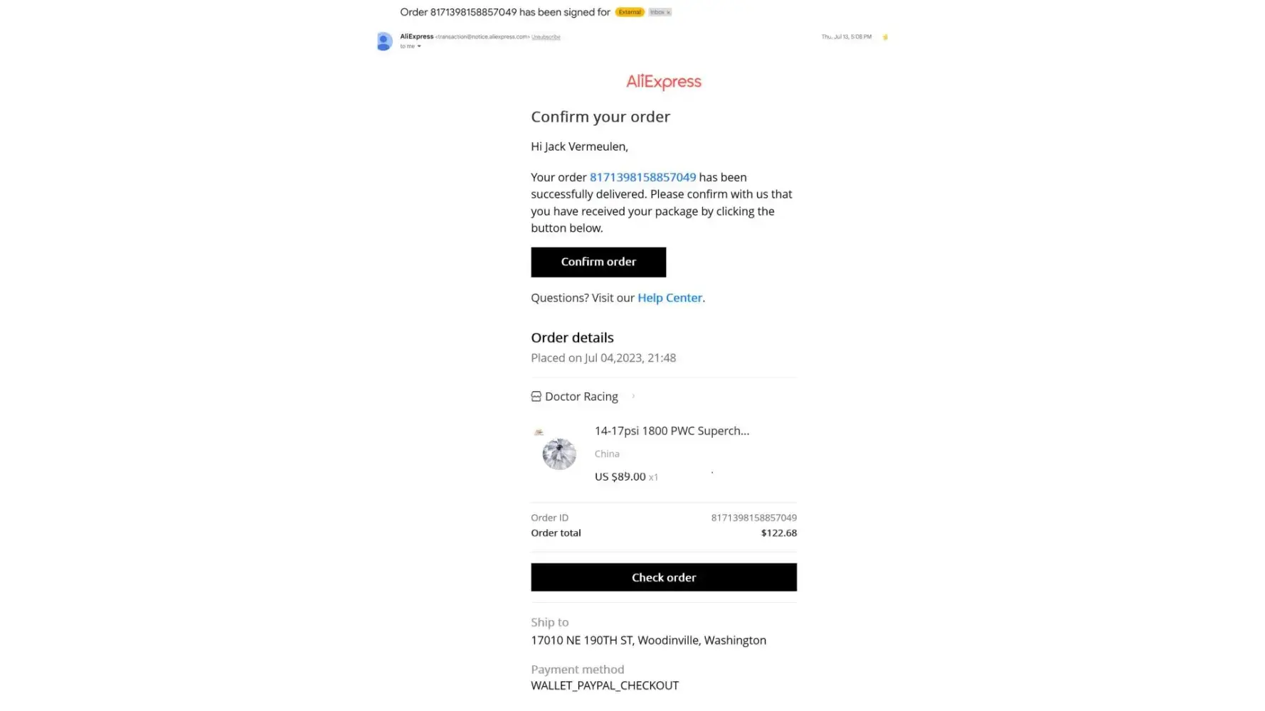 I ordered an item from Aliexpress on Order placed July 4, 2023.