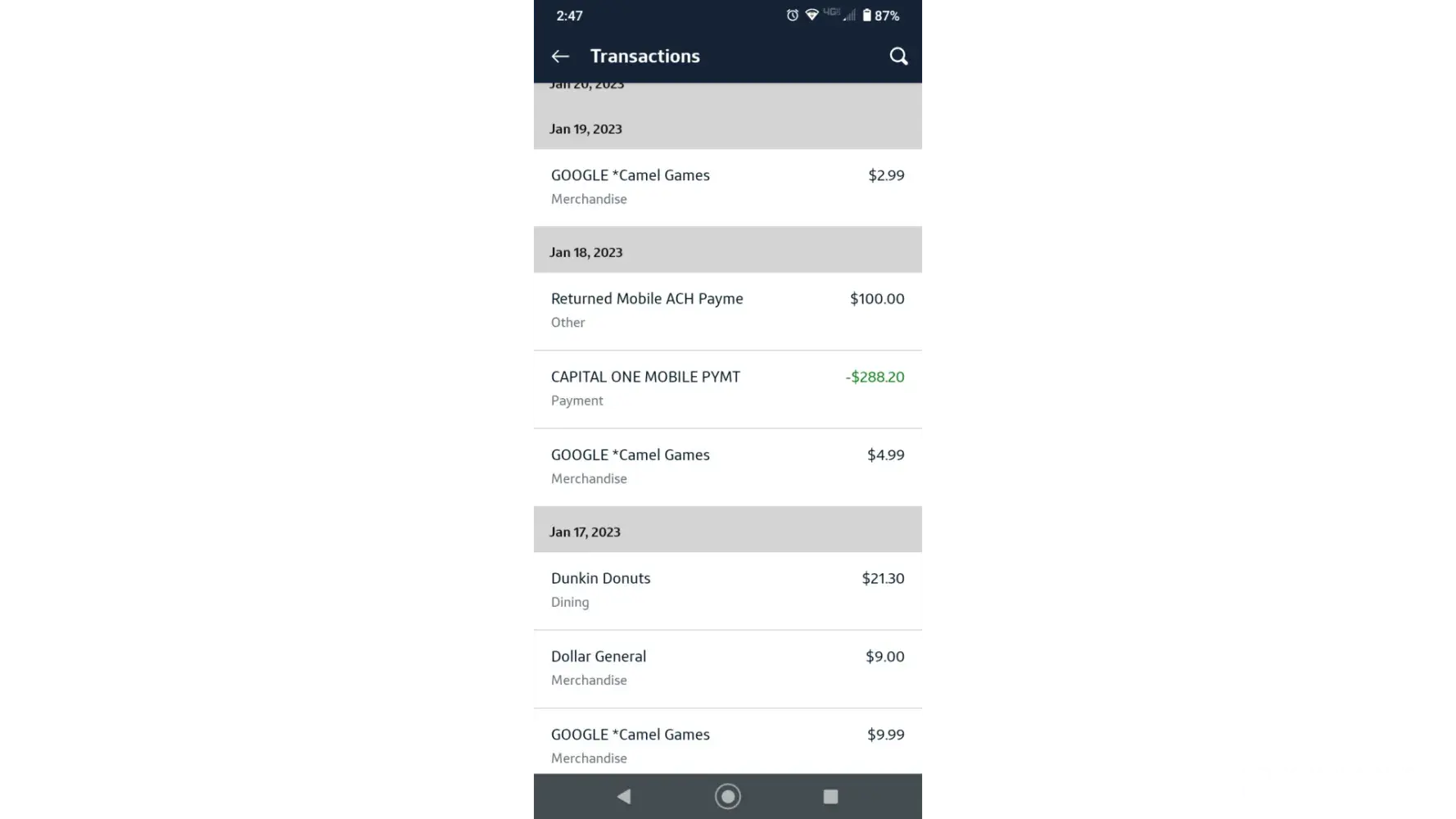 I payed the due amount of 288.20$ only 100$ apparently applied to it and 100$ was supposedly returned but had never been put back into my account. Only 100$ was applied to my capital card. I am seeking the 100$ that was returned because in my bank account the whole 288.20$ was deducted and I had sufficient funds to pay for it as you can see in my attached files.
