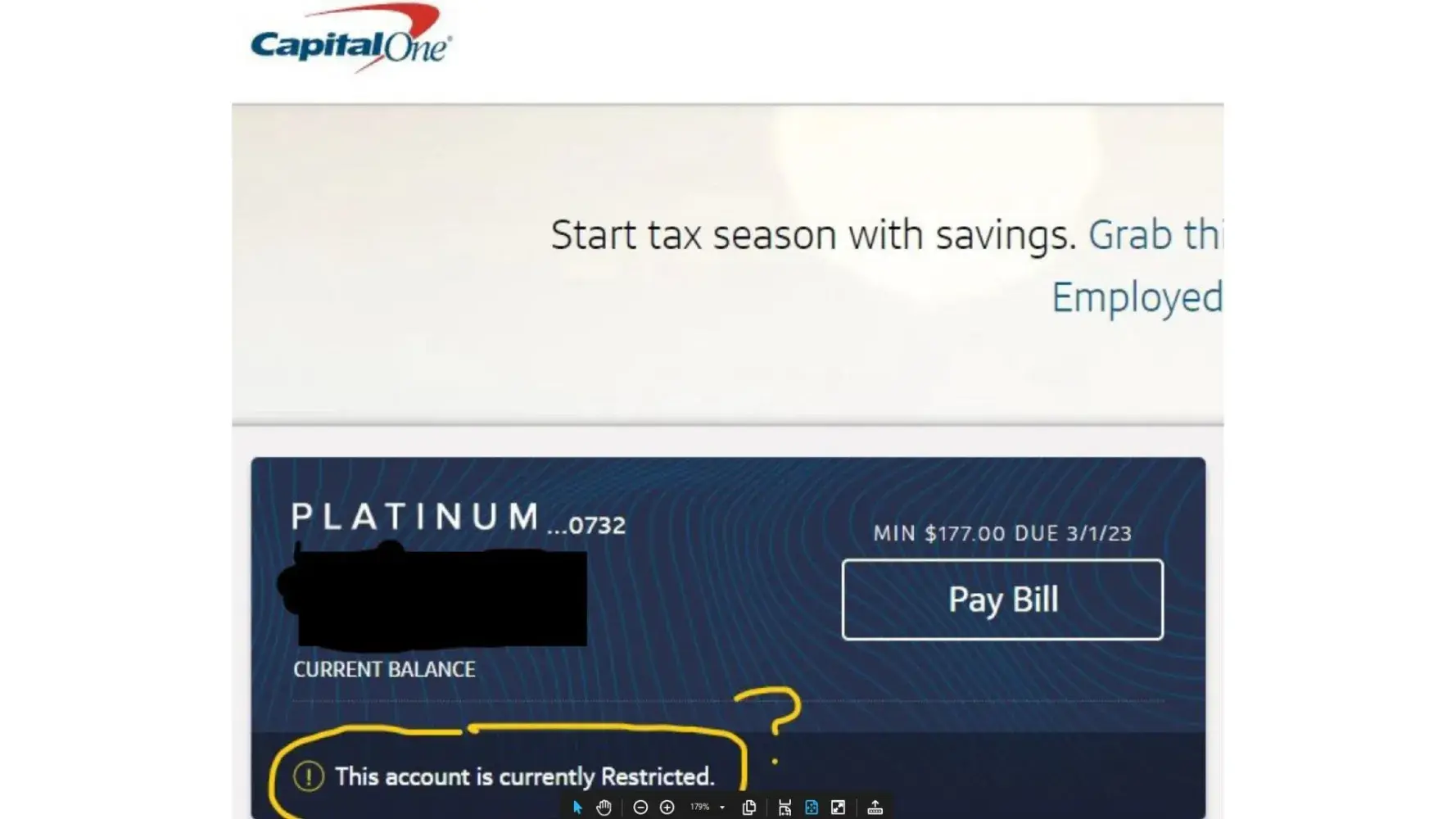 Capital One has restricted my credit card account to current balance and no further purchases are allowed.