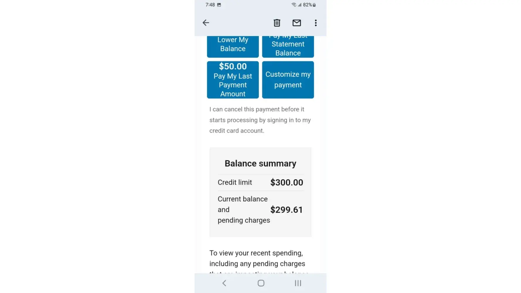 I made a minimum payment of $41 on Jan. 3, and was assessed a late fee even though I paid the minimum before the due date on Jan. 12. I also made an additional payment on Jan. 17. I was assessed a $40 late fee. In December, I paid the minimum payment before the due date, and I paid again on Dec. 20. I was assessed a late fee for December. I canceled my November payment on the 12th, but I paid the minimum payment on Nov. 22. My account was not past due in Dec, and the minimum payment at the time was $41. The same was true in Jan. My account still does not say that it is past due, and it did not say it was past due in Jan or Dec. I called and asked them to reverse the two $40 late fees they assessed, and they refused.