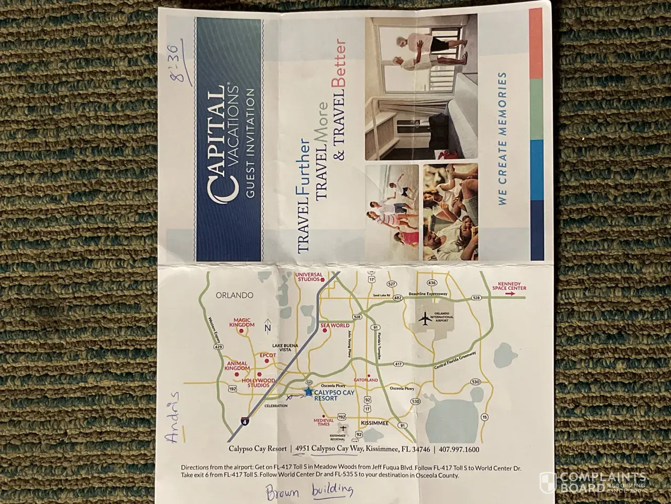 Also went to meeting to find out about capital taking over and the rep kept insisting if I don't sign paperwork they are charging me another $18000 for the timeshare. I was told I had to sign right then but wouldn't give me copies of paperwork either!