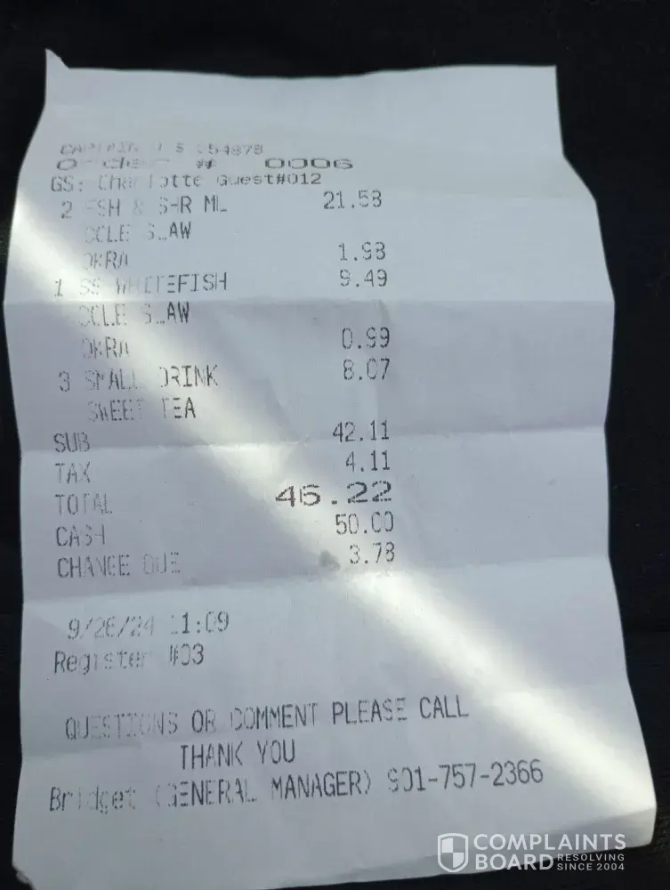 Read full complaintAbout Captain D's